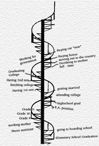 For Glenda Mae Green's dissertation on perceptions of success of Caribbean Canadian women, one of the data collection techniques she used was to ask the women to write in various significant events in their lives that indicated success. The straicase below is what Eboni wrote. Other reseaerchers are finding lifelines to be an excellent source of data.