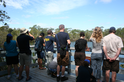 From March 10-22, thirteen AU biology students and two faculty participated in a field trip to south Florida to study the remarkable and fragile ecosystems of the region. Participants spent one day at Corkscrew Swamp Wildlife Sanctuary; canoed through the mangroves of the 10,000 Islands to reach Lulu Key, where the class camped and studied intertidal marine life; travelled to the Florida Keys for a day of snorkeling and study of marine life along the rocky eastern coast; and visited multiple terrestrial and freshwater habitats in Everglades National Park. "This is how you really learn biology–by experience!" notes Tom Goodwin, biology teacher and one of the trip leaders. Goodwin and Gordon Atkins, also a biology professor, have run the tour every other year during spring break since 1996.