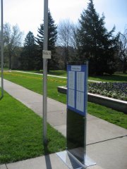 For the commencement service on Sunday morning, the lineup is highly regulated. In order for you to receive the right degree–the one for which you have worked, you must find a very specific place in line. Your place in line is posted in a big plastic placard at both corners of the mall closest to PMC. First find your name and your position in line. That position is designated something like B8 or A2. Each flag pole on the North and South sides of the flag walk is labeled with a small placard. Side A is the Seminary (South) side. Side B is the Administration Building (North) side. Go to the A or B side. Then find the flag pole with your row number and you should see your name. It will look something like the Row 16 picture at right.