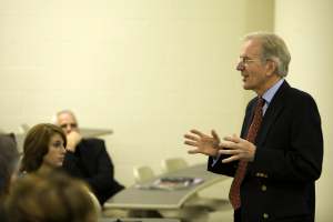 The forum began Saturday morning with breakfast and a devotional thought given by Steven Crain, campus pastor for Manchester College, Manchester, Ind., and assistant professor of philosophy and theology at the University of St. Francis, Joliet, Ill. These were followed by the Presidents’ Addresses, given by James Brenneman, president of Goshen College, Goshen, Ind., and Niels-Erik Andreasen. These Old Testament scholars gave the first of the morning’s presentations in the physics amphitheater of Haughey Hall.