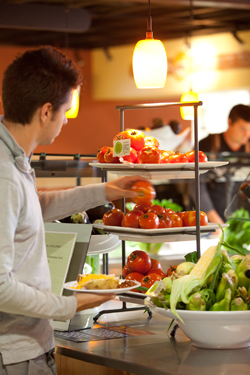 On Tuesday, Sept. 28, Andrews University Dining Services, under the leadership of Bon Appétit Management Company, held its first annual Eat Local Challenge. A special meal was prepared entirely from ingredients sourced within 150 miles of Dining Services. The challenge was designed to help students, staff and faculty think and talk about local food, educating them on the environmental and economic benefits of “eating straight from the farm.”