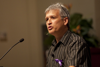 | Carl Wilkens, a former ADRA director in Rwanda, was the keynote speaker. Wilkens said he couldn't have stayed in Rwanda when he did if it wasn't for the support he received from his Rwandan friends. (Photo by Jason Lemon) |