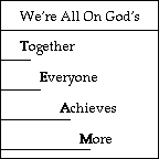 Several items on the walls of Renaes classroom remained constant. There were always a few inspirational posters scattered around the room, and one large green and white poster, to which Renae referred occasionally, reminded students of the value of team work: