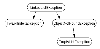 The following diagram illustrates one possible exception class hierarchy designed to support the linked list as described above: