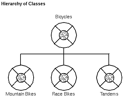 Generally speaking, objects are defined in terms of classes. You know a lot about an object by knowing its class. Even if you don't know what a penny-farthing is, if I told you it was a bicycle, you would know that it had two wheels, handle bars and pedals.Object-oriented systems take this a step further and allow classes to be defined in terms of other classes. For example, mountain bikes, race bikes and tandems are all different kinds of bicycles. In object-oriented terminology, mountain bikes, race bikes and tandems are all subclasses of the bicycle class. Similarly, the bicycle class is the superclass of mountain bikes, race bikes and tandems.
