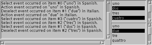 Below is the code that creates each list and handles events on the lists. (Here's the whole program.) Note that the