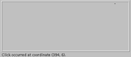 [Should add X and Y axes, with the origin at 0,0 and Y extending downward.]Here's an applet that we'll build on throughout this trail. Whenever you click within the framed area, the applet prints the coordinate that you clicked.