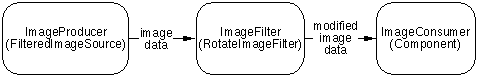 getSource()method. The second argument to the FilteredImageSource constructor is the filter object.Finally, the code causes the image to be filtered and gets the result, all by invoking the ComponentImageProducer producer = new FilteredImageSource( sourceImage.getSource(), filter);createImage()method. The lone argument tocreateImage()is the FilteredImageSource created in the above step.Here's what the path for the image data looks like:resultImage = createImage(producer);