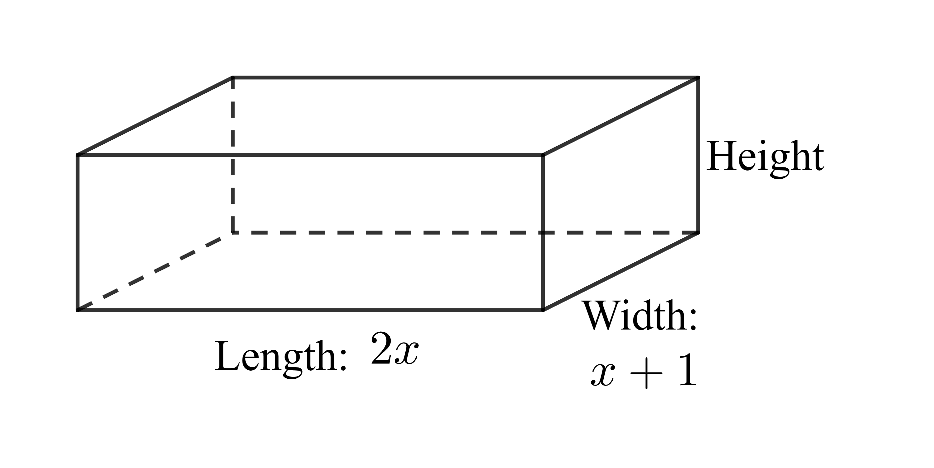 There are a few ways to approach this problem. Divide the expression for the volume of the solid by the expressions for the length and width. A sketch is in figure 3.