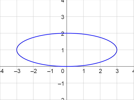 $$\frac{\left(x - 1\right)^2}{9} + \frac{\left(y + 3\right)^2}{4} = 1$$