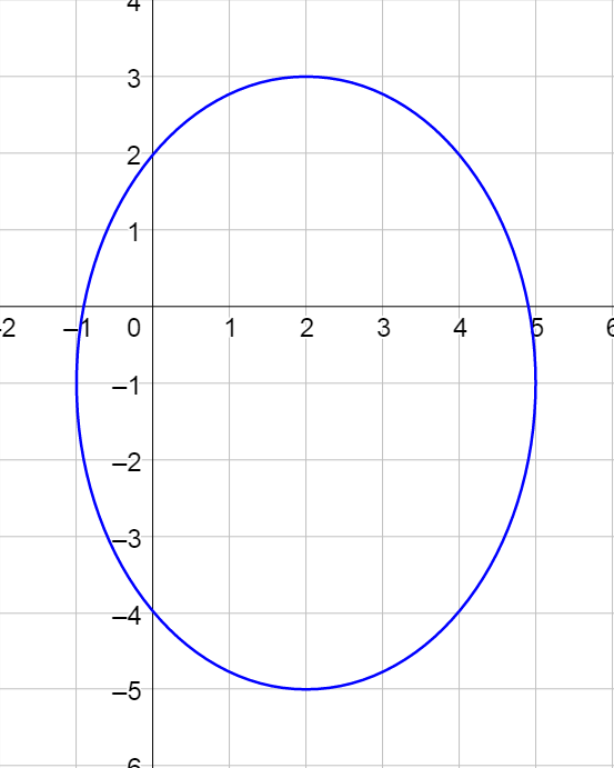 Find the standard equation of the ellipse with vertices (−1, 4) and (5, 4) and covertices (2, 3) and (2, 5).