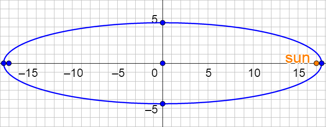 a is half of the major axis, so \(a = \frac{1}{2} 35.8 = 17.6 \text{ AU}\). Now use the eccentricity to find c.