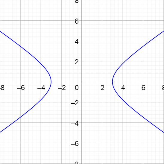 Eliminate the parameter in \(\left\{\begin{align}x &= t^2 - 1\\y &= 3t\end{align}\right.\).
