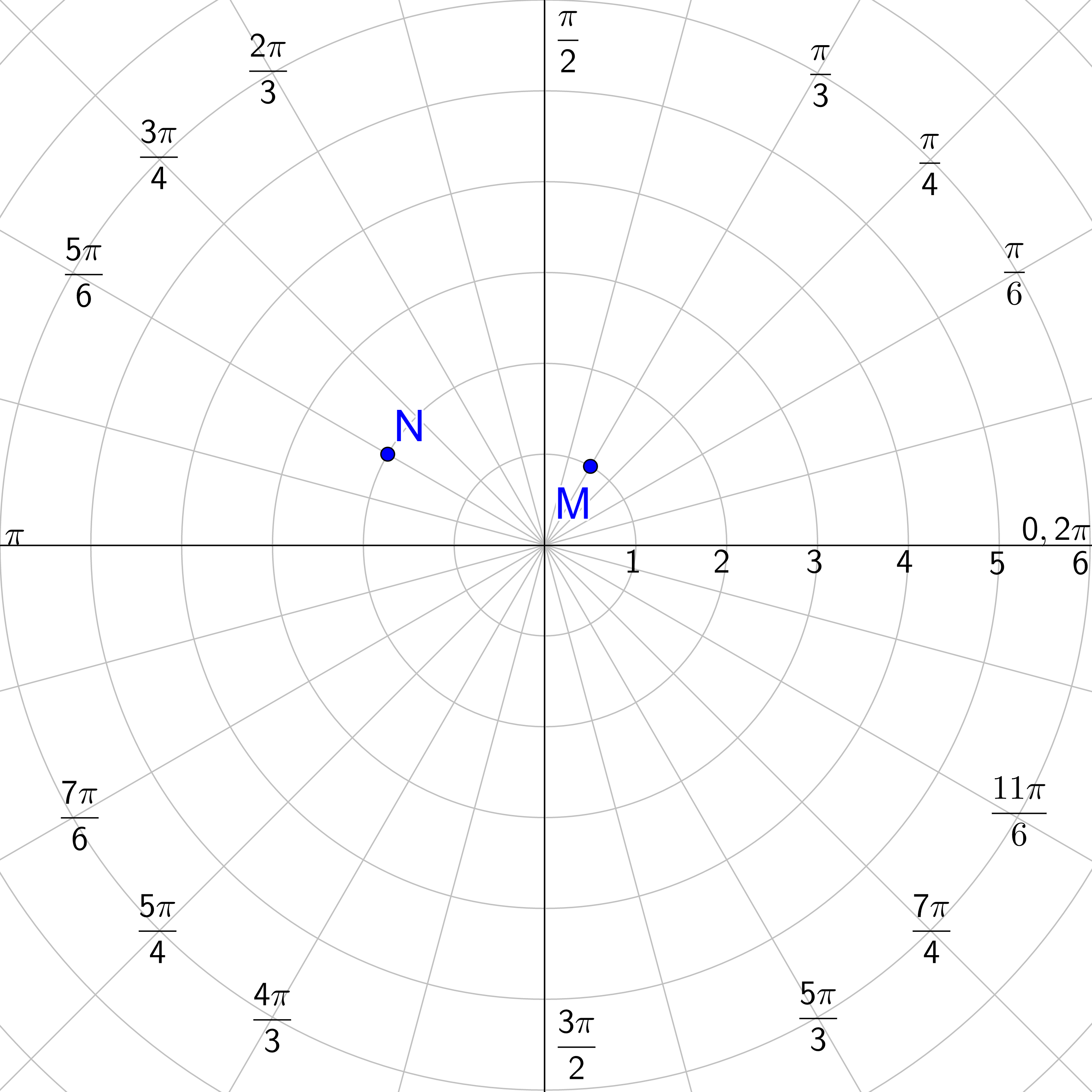 $$ \left(4, \frac{5π}{6} + 2π\right) $$