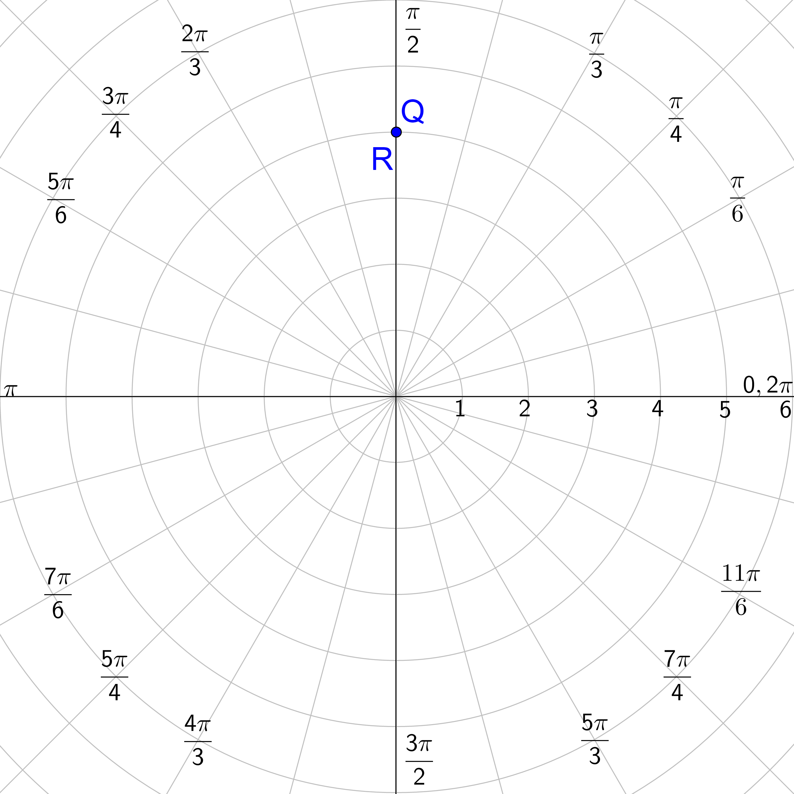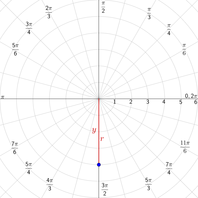 The angle in the graph matches \(\frac{3π}{2}\) so use that choice. The point is \(\left(4, \frac{3π}{2}\right)\).