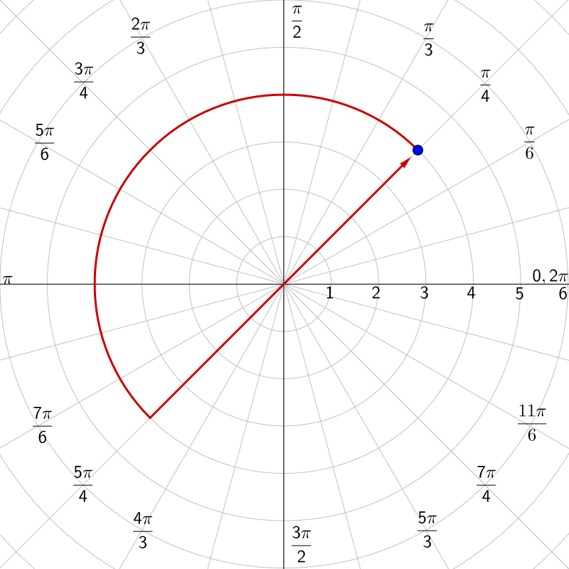 $$ \left(4, \frac{5π}{6} + \frac{12π}{6}\right) $$