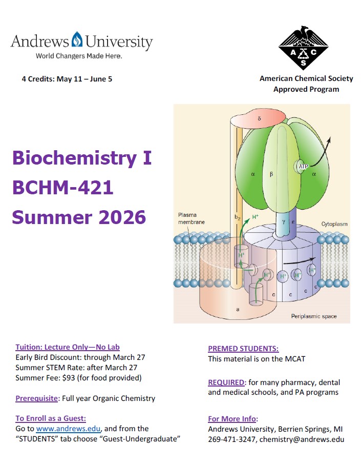 We are happy to offer our upper-level Biochemistry Intensive course, BCHM 421: