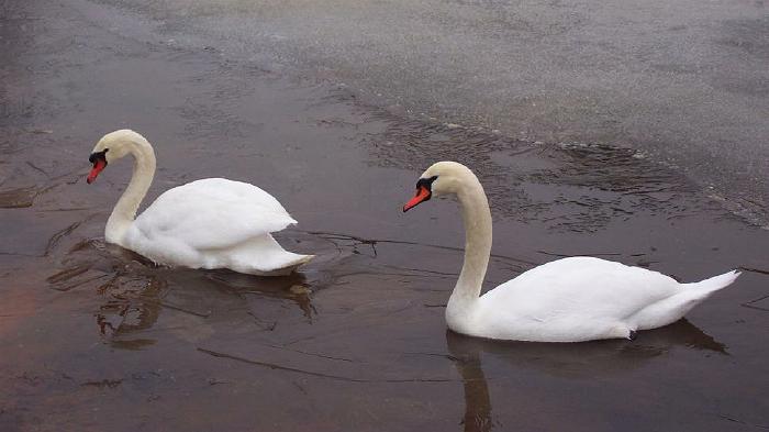 Mute swans in ice, Lake Michigan College Campu Benton Harbor, Michigan, January 12, 2002