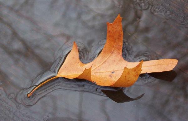 Pin oak leaves on wet boardwalk, Sarett Nature Center, Berrien County, Michigan, November 24, 2001